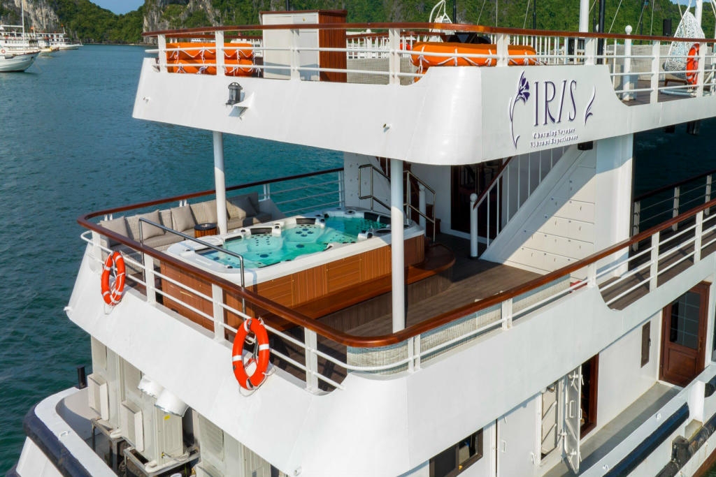 Iris Cruise thuộc thế hệ du thuyền 99 chỗ vỏ sắt mới nhất sở hữu hàng loạt chuỗi các tiện ích đẳng cấp phục vụ du khách, trong đó có thể kể đến 2 nhà hàng theo phong cách Á – Âu phục vụ thực đơn buffet phong phú đa dạng,bể sục Jacuzzi ngoài trời và boong tắm nắng… Du thuyền Iris Cruise thực sự là một kiệt tác sống động trên biển mang đến du khách sự lựa chọn hoàn hảo cho hải trình tham quan vịnh Hạ Long trong ngày.