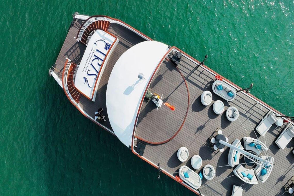 10:30 – 11:30 Đội ngũ Iris chào đón du khách lên tàu, thưởng thức đồ uống chào mừng.