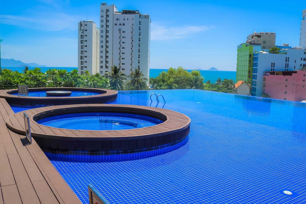 - Thỏa sức bơi lội tại bể bơi tràn bờ view hướng ra thành phố (có hồ bơi trẻ em)
