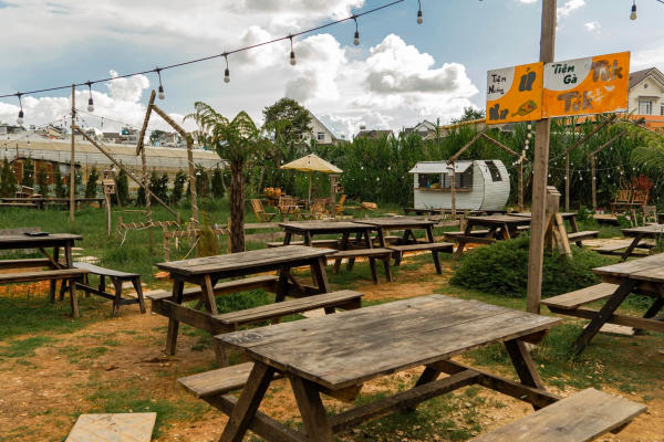 Một địa chỉ vừa có đồ ăn ngon vừa được ngắm cảnh đẹp thì không thể không nhắc tới Tiệm gà Tuk Tuk nằm trên đường Trần Khánh Dư. Không gian xinh xắn, toàn bộ đồ nội thất được làm bằng gỗ đậm chất vintage, góc nào cũng thích hợp để check in sống ảo.