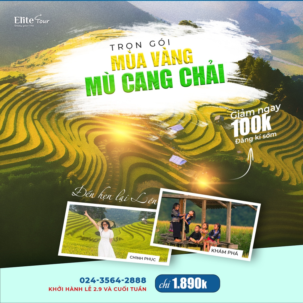 Mù Cang Chải nằm ở phía Tây tỉnh Yên Bái, nổi tiếng với những thửa ruộng bậc thang đẹp mãn nhãn, đặc biệt là mùa lúa chín. Riêng ở huyện Mù Cang Chải có tới 700ha ruộng bậc thang, phần lớn tập trung ở các xã La Pán Tẩn, Chế Cu Nha và Dế Xu Phình. Mùa lúa chín ở Mù Cang Chải là từ tháng 9 - tháng 10 hàng năm, thời điểm này du khách khắp nơi sẽ đổ về Yên Bái để chiêm ngưỡng khung cảnh ngoạn mục của những bậc thang vàng trải dài khắp càng sườn núi, thung lũng Mù Cang Chải.