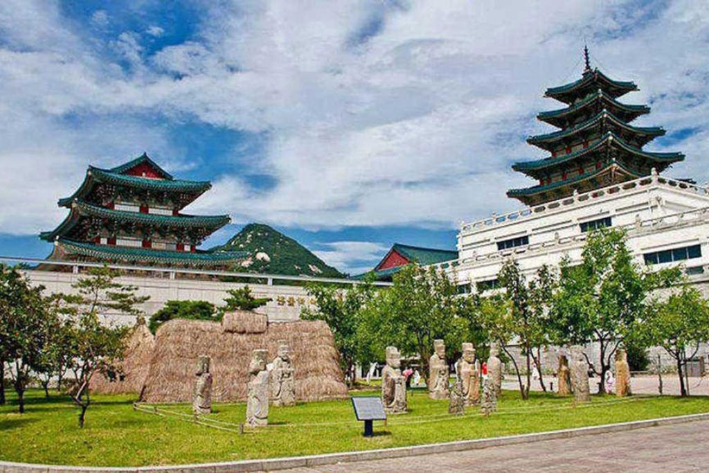 + Cung điện Hoàng gia Kyong-bok (Gyeongbokgung Palace) – Cung điện Hoàng gia với 500 tuổi và 7,225 gian nhà, Bảo tàng Dân gian Quốc gia, Nhà Xanh - Phủ tổng thống (chụp hình bên ngoài).